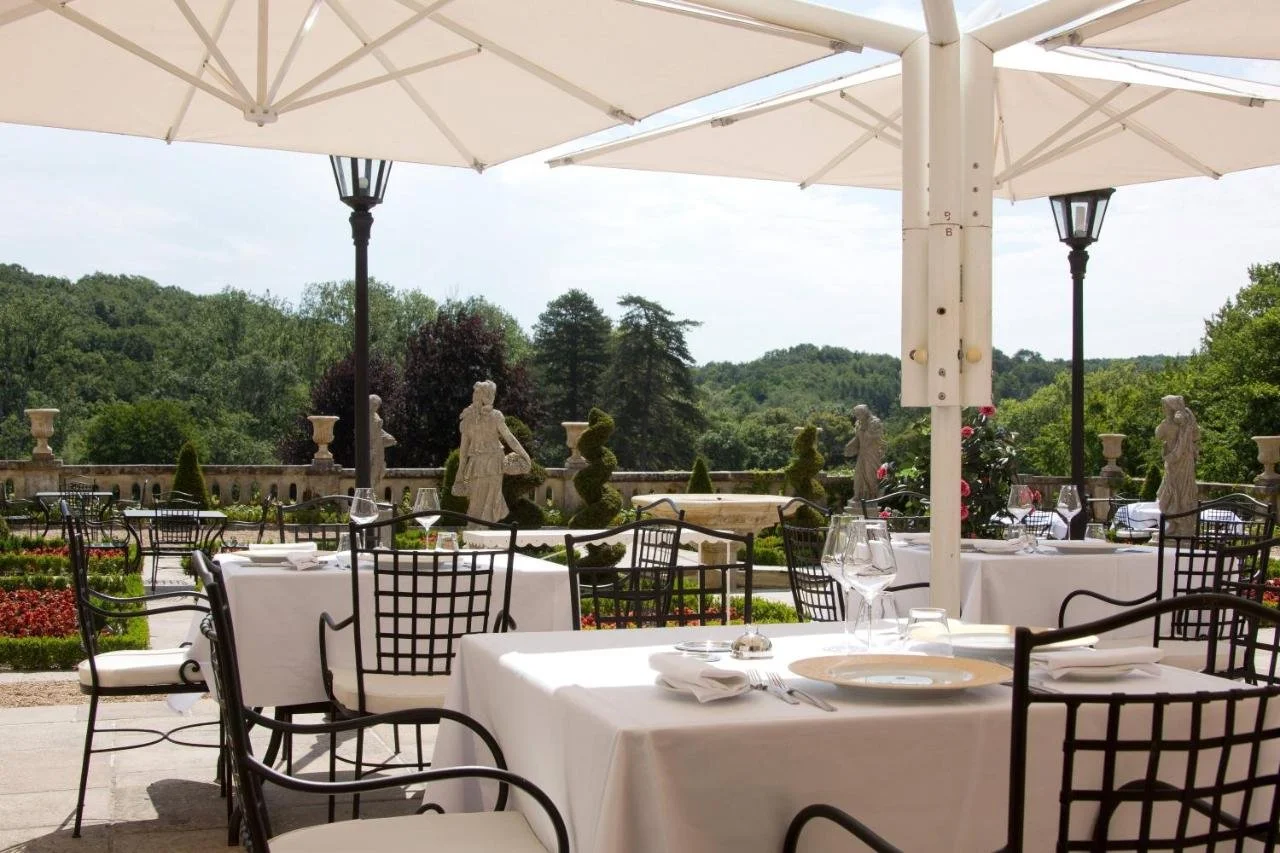 Outdoor terraces overlooking French fountains and gardens for a cocktail hour before your reception