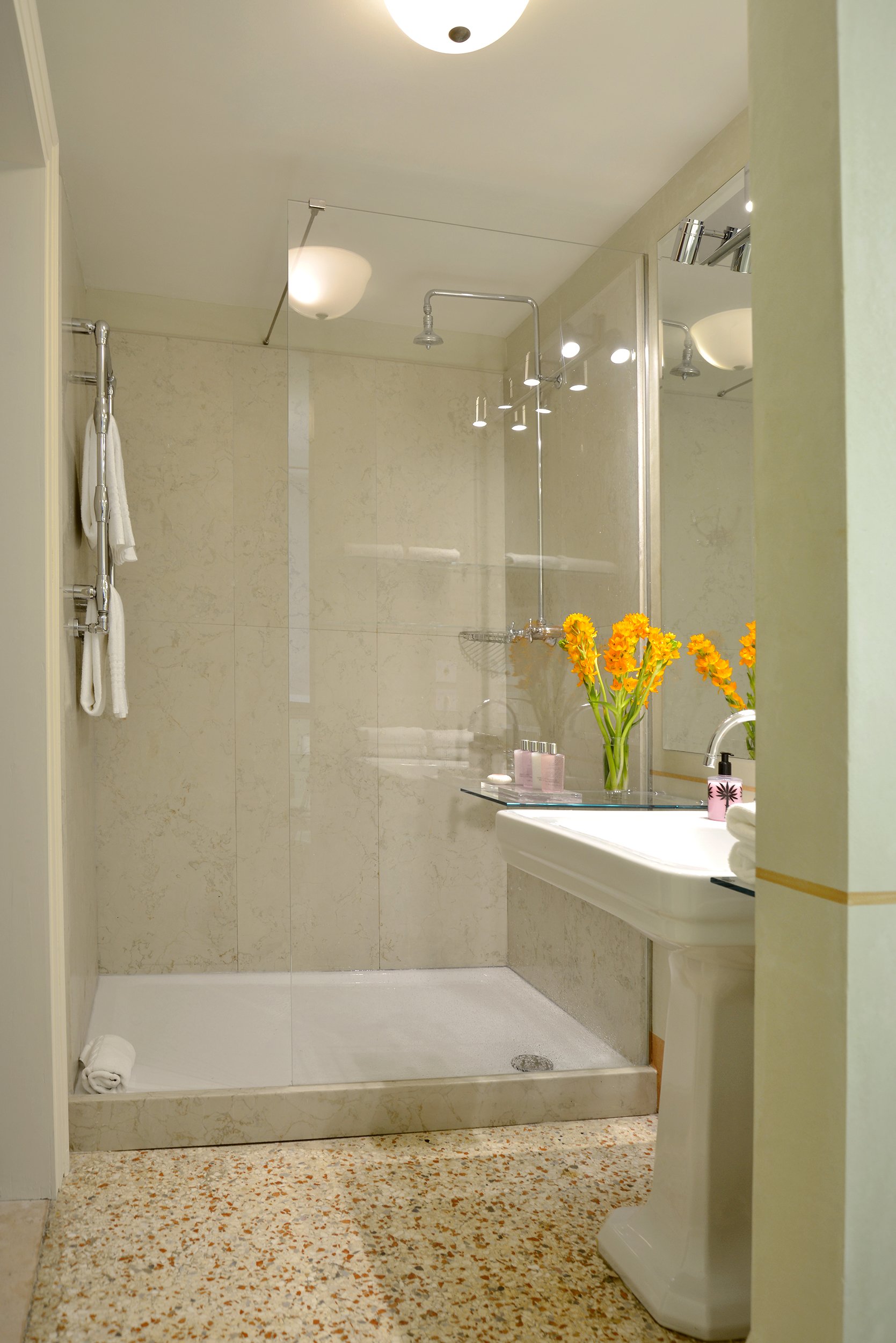 Canella is at the top of the palazzo with exclusive access to an altana (a typical Venetian roof terrace constructed in wood) and has 3 bedrooms and 3 bathrooms. It has a marvelous, spacious room under the eaves with extra beds and lounging area with TV and extra bathroom.